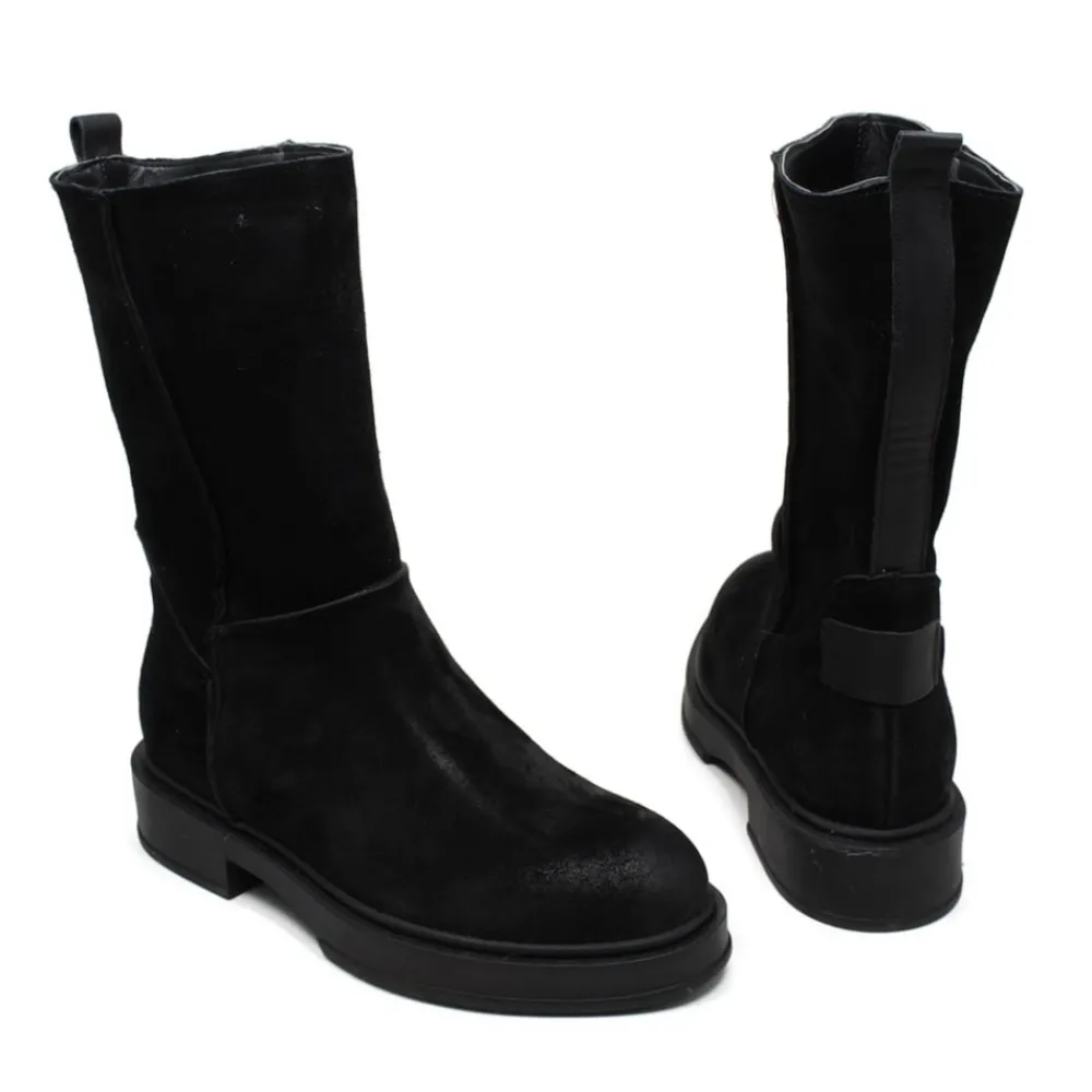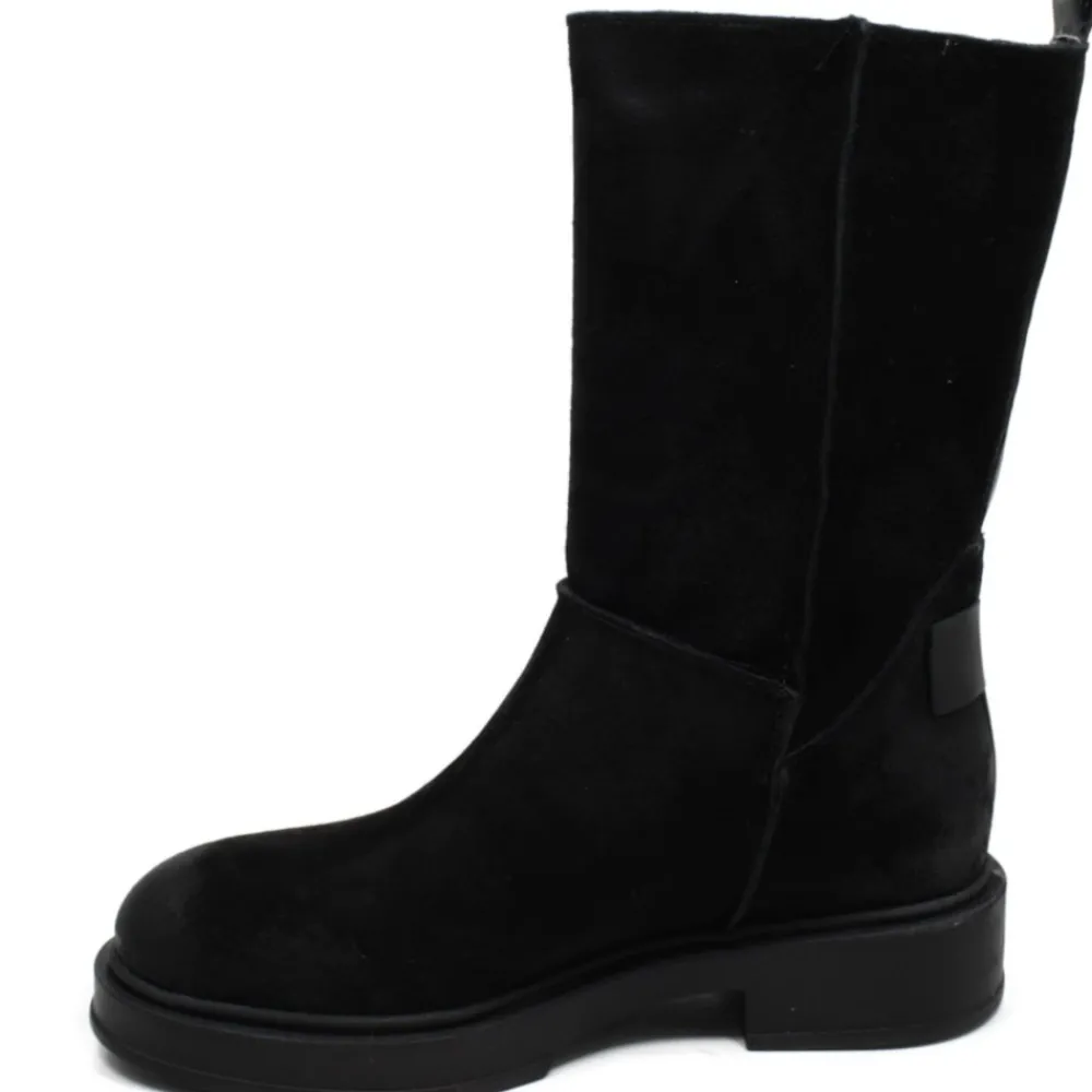 Stivali Medi Morbidi in vera pelle scamosciata color Nero con inserti in pelle nero. Nuova Collezione Autunno/Inverno.
